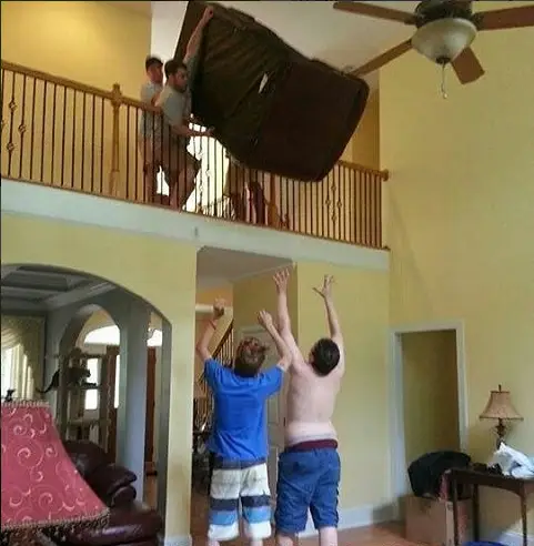 We visited my parents last week and died laughing for the sixtieth time about this photo collection of men doing dumb stuff. Every single time we look at it, my dad and husband defend the dudes in at least four of the pictures: "See, that one, though, is fine. That one's a good idea." It is never a good idea.